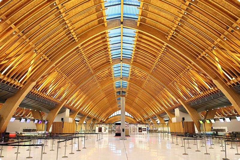 国際線到着は第2ターミナル、国内線は第1ターミナルから発着します。到着後はまず入国審査を受け、荷物を受け取った後に税関を通過し、シャトルバスや徒歩で国内線ターミナルに移動します。ターミナル間の移動時間は徒歩で10分ほどですが、混雑状況や荷物検査に時間がかかることがあります。